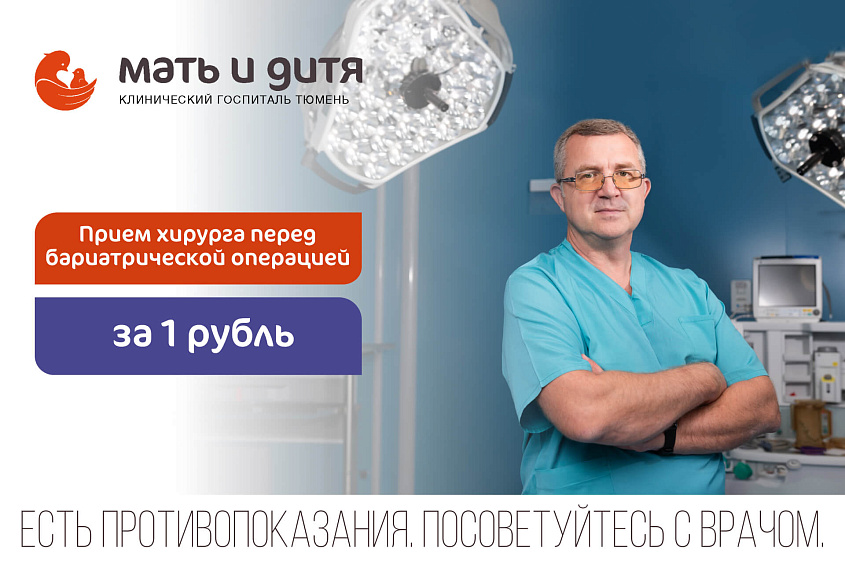 Также в КГ «Мать и дитя» Тюмень действует акция Бариатрическая операция за 320 000 рублей под ключ!