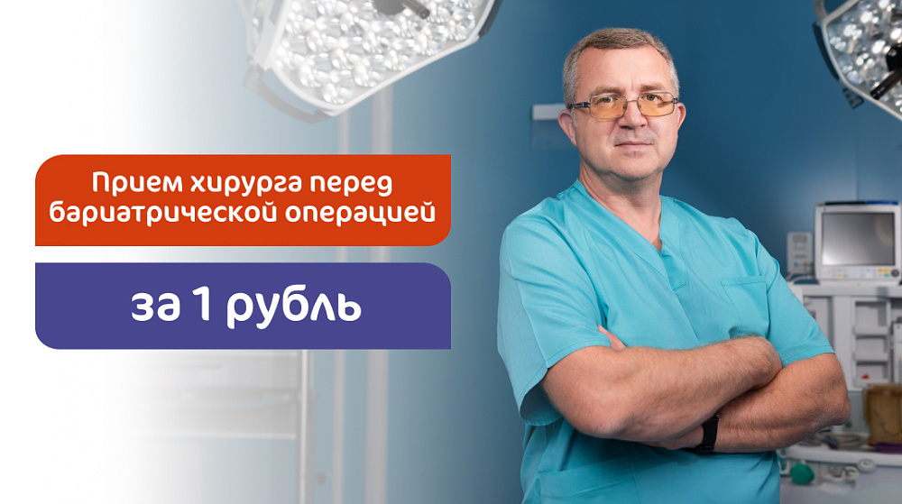 В Клиническом Госпитале «Мать и дитя» Тюмень с 22 сентября по 31 декабря 2025 года действует акция: стоимость приема врача-хирурга перед бариатрической операцией - 1 рубль.